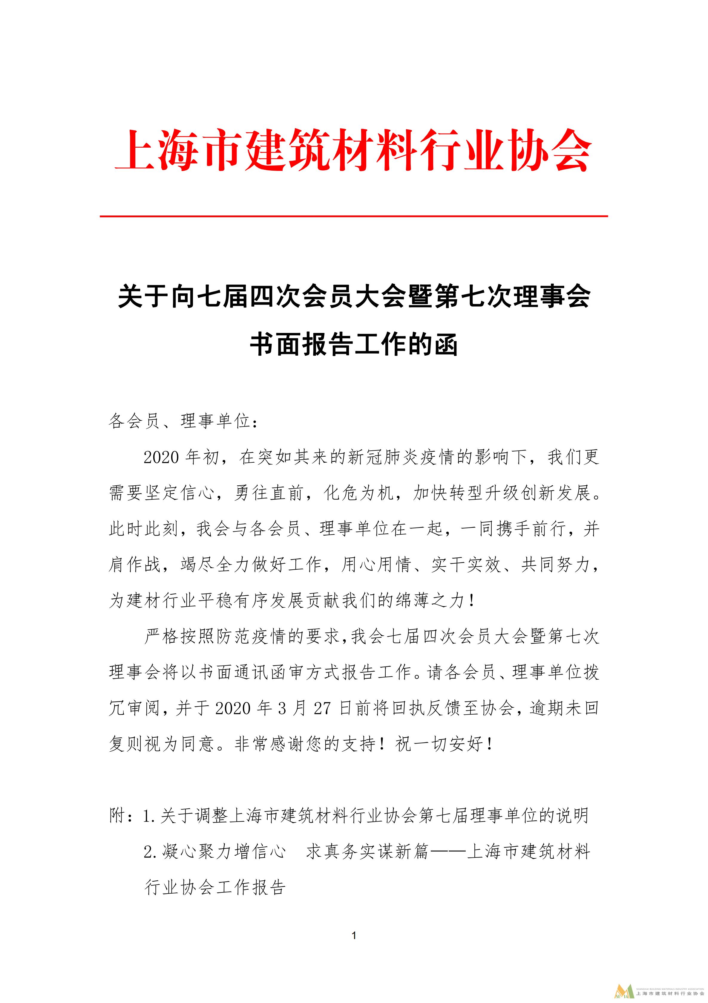 關于向七屆四次會員大會暨第七次理事會書面報告工作的函