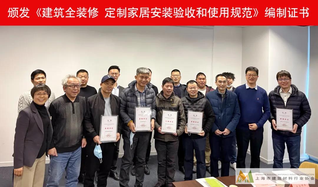 頒發《建筑全裝修 定制家居安裝驗收和使用規范》編制證書